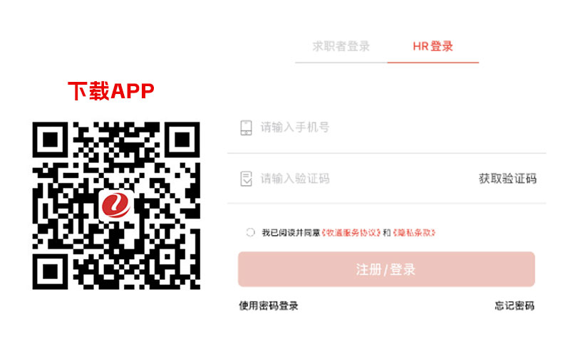 1、掃描二維碼下載或到手機應用市場下載“牧通人才網APP”,打開選擇“HR登錄”,注冊/登錄時請?zhí)顚懻鎸嵱行У碾娫捥柎a,便于您日后登陸和接收求職者應聘信息。